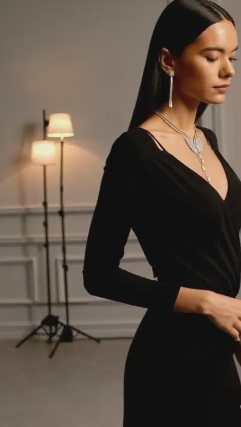 Silver Butterfly Pendant Necklace Set with Crystal-Studded Earrings – Elegant and Lightweight Party Wear Jewelry.